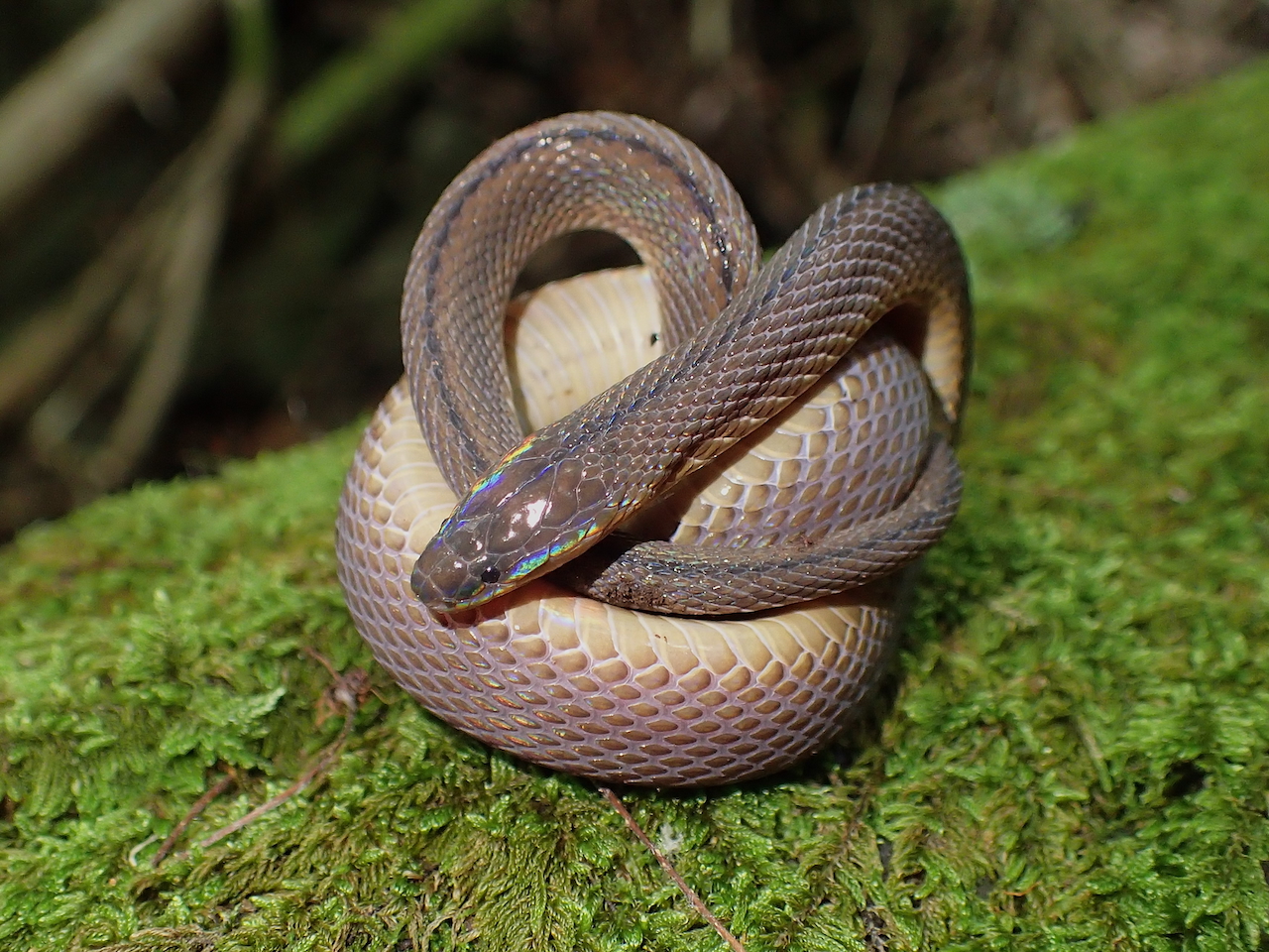 タカチホヘビ/ハート形に蜷局をまいたタカチホヘビです♡威嚇のハート?恐怖のハート?求愛のハート?何のハートでしょうか?